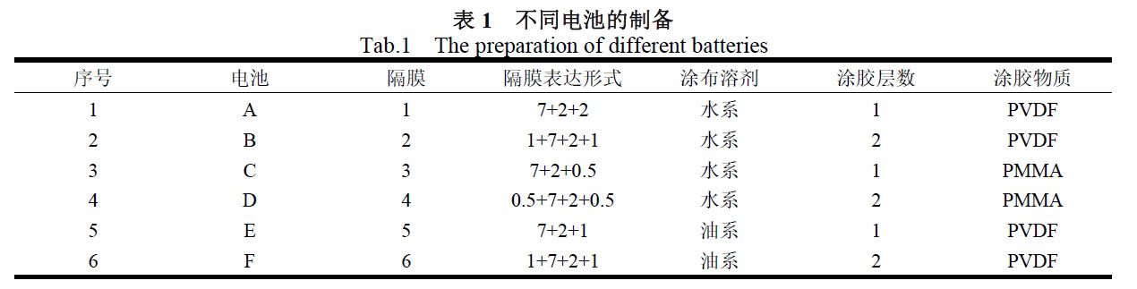 表1列出了各種電池的制備對比情況。