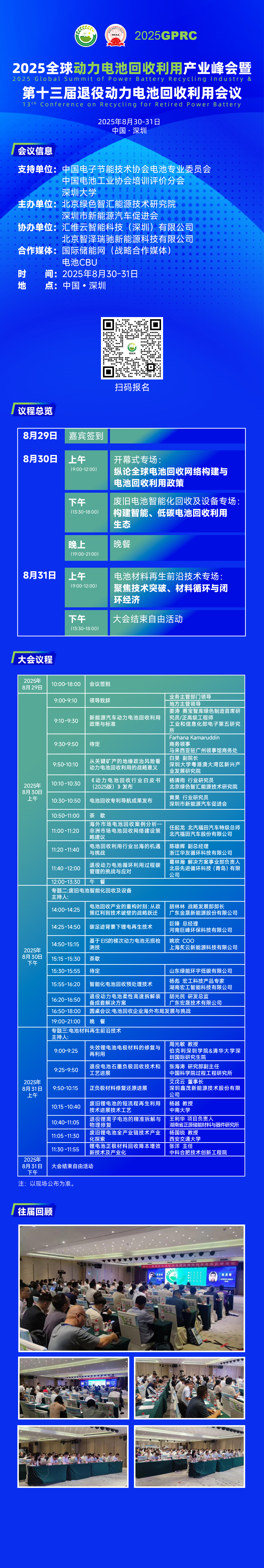 「思想核爆,燃動(dòng)全域」2025全球動(dòng)力電池回收利用產(chǎn)業(yè)峰會(huì)最新議程