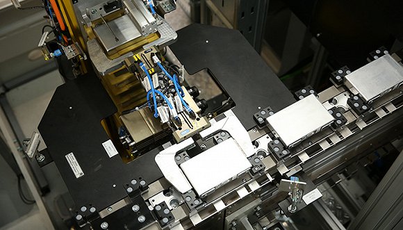 整個生產過程的工作環境都有嚴格的清潔度及溫濕度控制。等離子清潔技術的應用,保證元件的表面清潔度并提升表面張力,使元件之間的絕緣箔片及膠可以更好地附著在金屬表面上。在雙模組生產的最后階段,全封閉的工作站更嚴格控制相對濕度低于31%,以確保涂膠質量。機械臂上的吸盤結構也是自動生產線的一大亮點,通過吸盤來抓取并傳送電芯元件,既不會攜帶雜質,又避免了手動操作可能的風險。