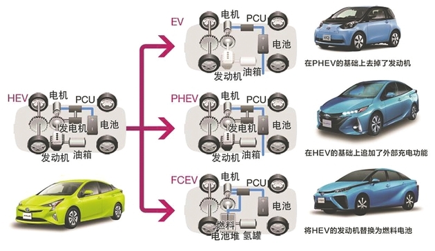 電動車,而是首先立足于擴(kuò)大電能應(yīng)用;而擴(kuò)大電能應(yīng)用的技術(shù)目前除了純電動技術(shù)(EV),還有混合動力(HEV)、外插充電混合動力(PHEV)、氫燃料