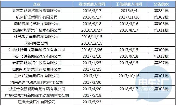 據相關政策規定,新能源汽車生產企業必須分別拿到由發改委以及工信部頒發的兩項資質,才能算真正擁有新能源車型的生產資質,從而進一步進行大規模量產。從2016年3月17日北汽新能源拿到首張新能源汽車生產資質,再到2017年5月22日江淮大眾獲得最后一張生產資質,短短14個月時間,發改委共發放15張新能源牌照。