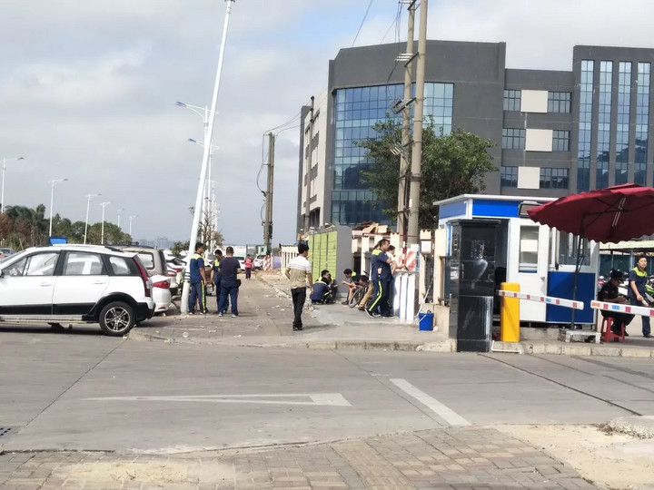中午12:30左右,NBD汽車來到2號門,看到數十名員工或拿著飲料、或拿著食物蹲在馬路兩旁,或坐在馬路上吃著、喝著,員工們一臉疲憊地休息著。