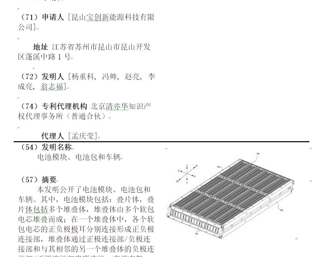 最近,我們從寶能旗下的電池公司寶創新能源新推出的幾篇專利中找到了答案,整體方案看起來像軟包的CTP。
