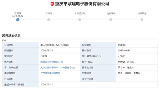 近日,深交所正式受理重慶市紫建電子股份有限公司(簡稱“紫建電子”)的創(chuàng)業(yè)板IPO申請(qǐng)。