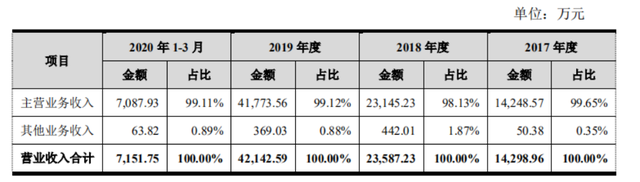 據(jù)招股書披露,2017年度、2018年度、2019年度和2020年1-3月,該公司前五大客戶收入占當(dāng)期營業(yè)收入的比重分別為36.97%、41.18%、57.66%和45.48%,客戶集中度較高。