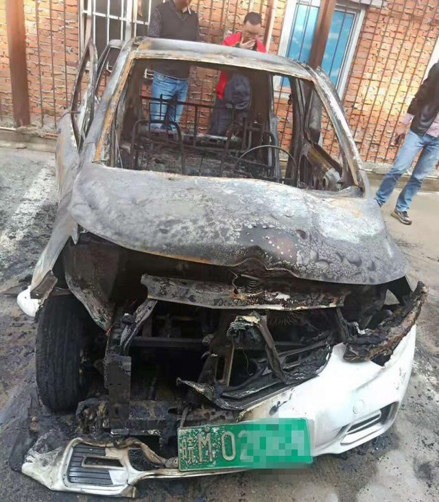 ▲2019年10月26日,安徽全椒縣一輛嘉安汽車因電池自燃被燒毀。圖片來源/受訪者供圖