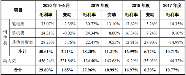 招股書中解釋稱,一方面,公司動力類業務處于布局階段,相關電池產品主要應用于電動摩托、汽車啟停系統等領域;另一方面,自2019年下半年起,公司將動力類與消費類鋰離子電池產線分開,且動力類鋰離子電池獨立產線尚未形成規模效應,分攤的固定成本較多。