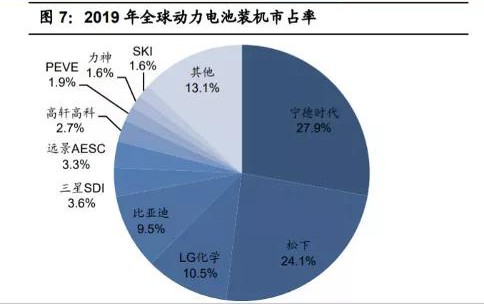 在國內整車廠方面,寧德時代為北汽、上汽、廣汽、東風、吉利等五大車企集團貢獻了超五成的動力電池,對北汽的貢獻甚至超過九成。2018年到2019年,為了保證電池供應,上述五大車企均宣布了與寧德時代建立合資電池廠的計劃。