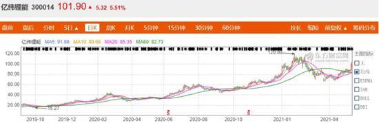 也有投資者擔心,澄清公告是否會影響股價下跌。但5月17日,億緯鋰能股價開盤跌2.53%后逐步走高,截至發稿上漲5.51%,收于101.90元/股,最新市值1925億元。