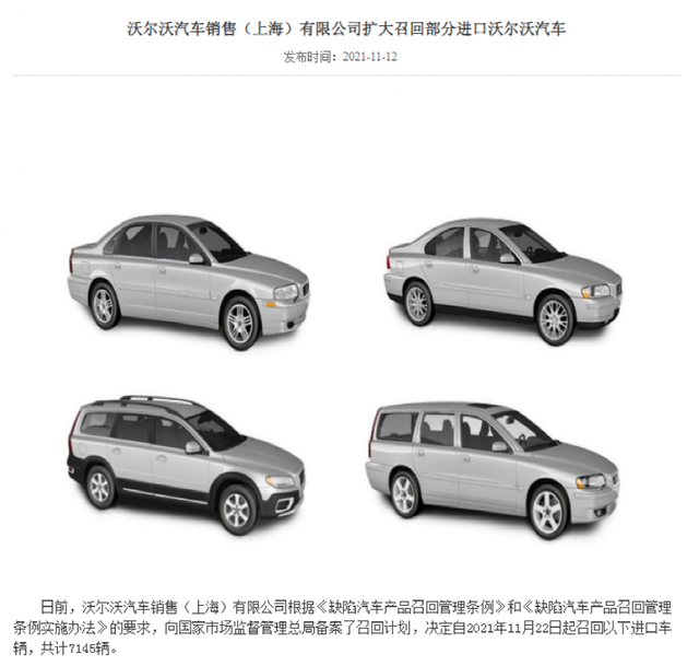 到了11月12日,沃爾沃又決定自2021年11月22日起擴(kuò)大召回7145輛進(jìn)口車輛。