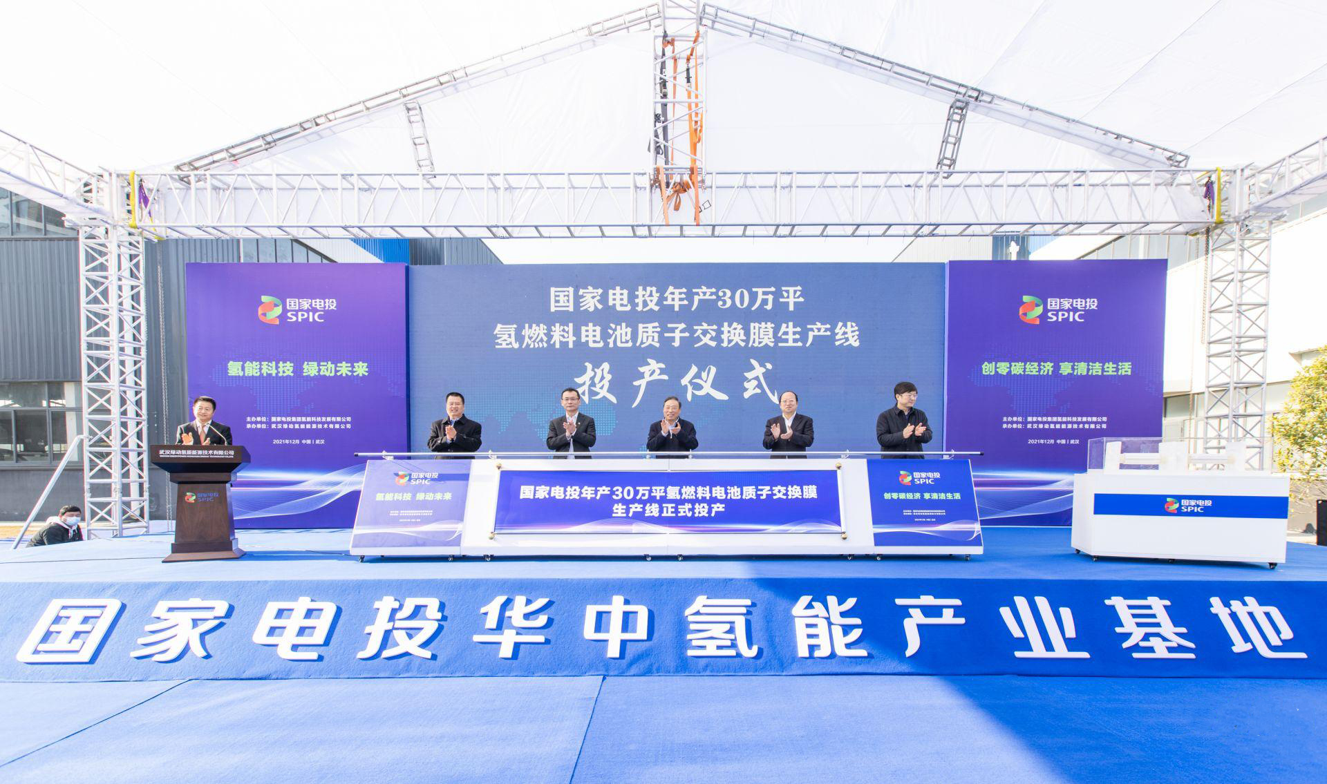 電池質子交換膜生產線正式投產。當天,國家電投氫能公司-武漢理工大學聯合技術中心武漢基地、湖北氫動力科技服務有限公司也進行揭牌。
