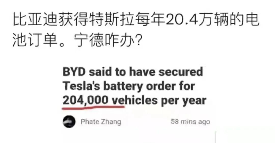 就在12日,市場再起波瀾。一則有關“比亞迪獲得特斯拉每年20.4萬輛的
