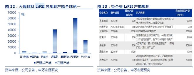 (2)2022 年公司通過技改將6F產能提升到6萬噸,2023年有望再投產5萬噸,此外公司加速雙氟磺酰亞胺鋰產能布局,現有6000噸產能Q2滿產滿銷,預計22年中新增1萬噸產能。公司雙氟磺酰亞胺鋰(LiFSI)現在產能和規劃產能均為全球第一,此外,公司還有VC、二氟磷酸鋰、DTD等新型添加劑產能將于22-23年逐步釋放,強化公司一體化競爭力,增厚利潤,可有效對沖六氟價格周期下行。
