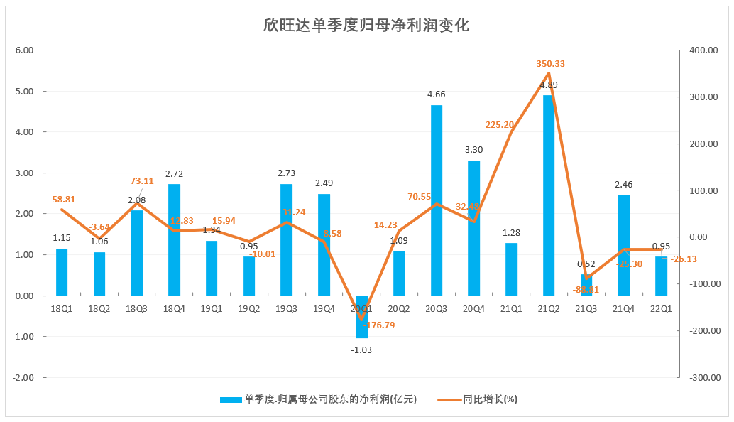 年初至今,欣旺達股價從43元跌至18.69元。近一年里,公司股價最大回撤達66.20%。