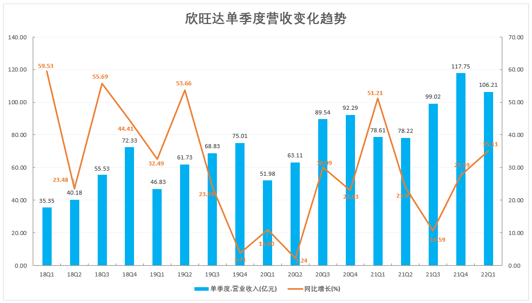 4月26日晚,欣旺達發布了一季度報告。報告期內,公司實現營業收入106.21億元,同比增長35.11%;歸母凈利潤9492.32萬元,同比下降26.13%;扣非凈利潤1.01億元,同比下降38.09%;基本每股收益0.05元。