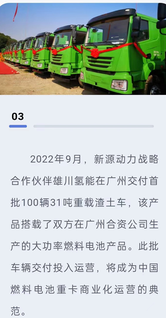 2022年3月,國家發展改革委、國家能源局聯合印發了《氫能產業發展中長期規劃(2021-2035 年)》,氫能燃料電池產業迎來了新的機遇與挑戰。新源動力秉承“燃料電池驅動世界”的愿景,加快M7平臺其它產品的開發及應用,聚焦于進一步提升燃料電池產品的可靠性、耐久性和降低產品成本,與志同道合的產業上下游企業開展廣泛的合作,打造氫燃料電池產業生態,共同為我國“雙碳”目標貢獻力量。