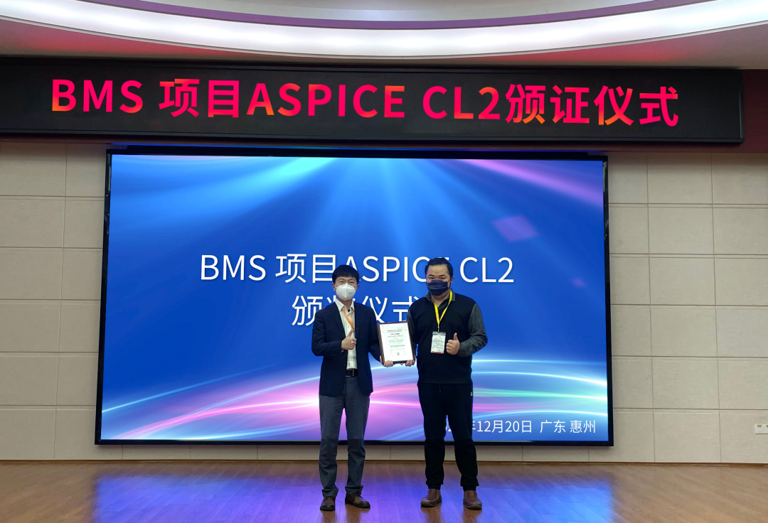 近日,惠州億緯鋰能股份有限公司(以下簡稱“公司”)SJ01 BMS項目通過Automotive SPICE Capability Level 2(以下簡稱“ASPICE CL2”)認證,標志著公司的BMS開發能力達到國際領先水平。