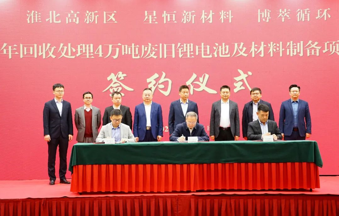 淮北市政府、星恒新材料、博萃循環(huán)共同簽署了《安徽星恒新材料項目》投資協(xié)議書