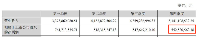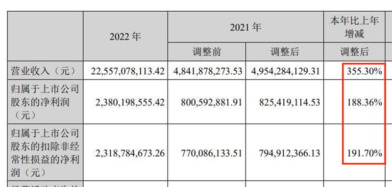 然而,2022年一季度,由于產(chǎn)品銷售量?jī)r(jià)齊升,德方納米凈利潤(rùn)高達(dá)7.62億元,相較上年同期大增1402.77%。同時(shí),2022年年報(bào)顯示,德方納米全年實(shí)現(xiàn)營(yíng)收225.57億元,同比增長(zhǎng)355.30%,凈利潤(rùn)23.80億元,同比增長(zhǎng)188.36%,其中2022年第四季度公司5.53億元。