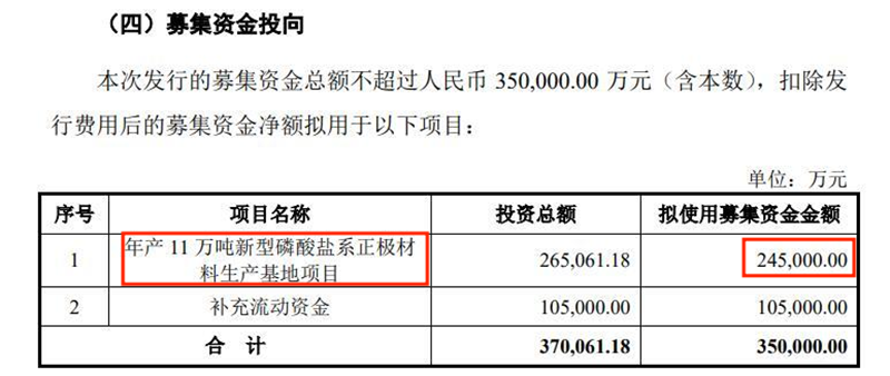 4月26日,德方納米披露可轉(zhuǎn)債募集說(shuō)明書(申報(bào)稿),預(yù)計(jì)募集資金總額不超過(guò)35億元(含本數(shù)),用于“年產(chǎn)11萬(wàn)噸新型磷酸鹽系正極材料生產(chǎn)基地項(xiàng)目”“補(bǔ)充流動(dòng)資金”。