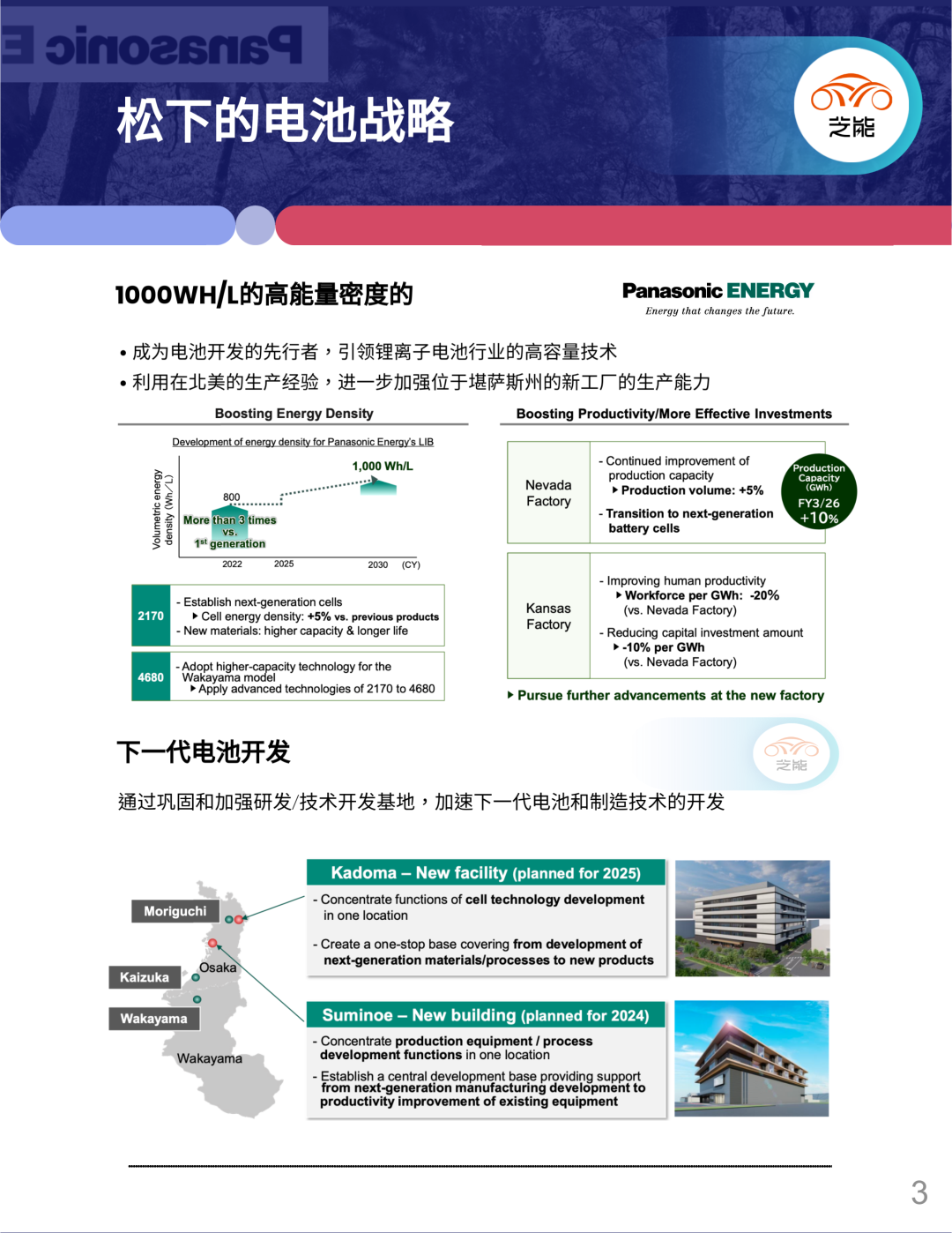 為了支撐業(yè)務(wù)擴(kuò)張,松下計(jì)劃在大阪府新建兩個(gè)專注于車載電池研發(fā)的基地。預(yù)計(jì)到2025年春季,松下將整合技術(shù)人才和新招募的專家團(tuán)隊(duì),致力于推動電池技術(shù)的進(jìn)步,包括提升電池容量以及減少對稀有金屬的依賴。