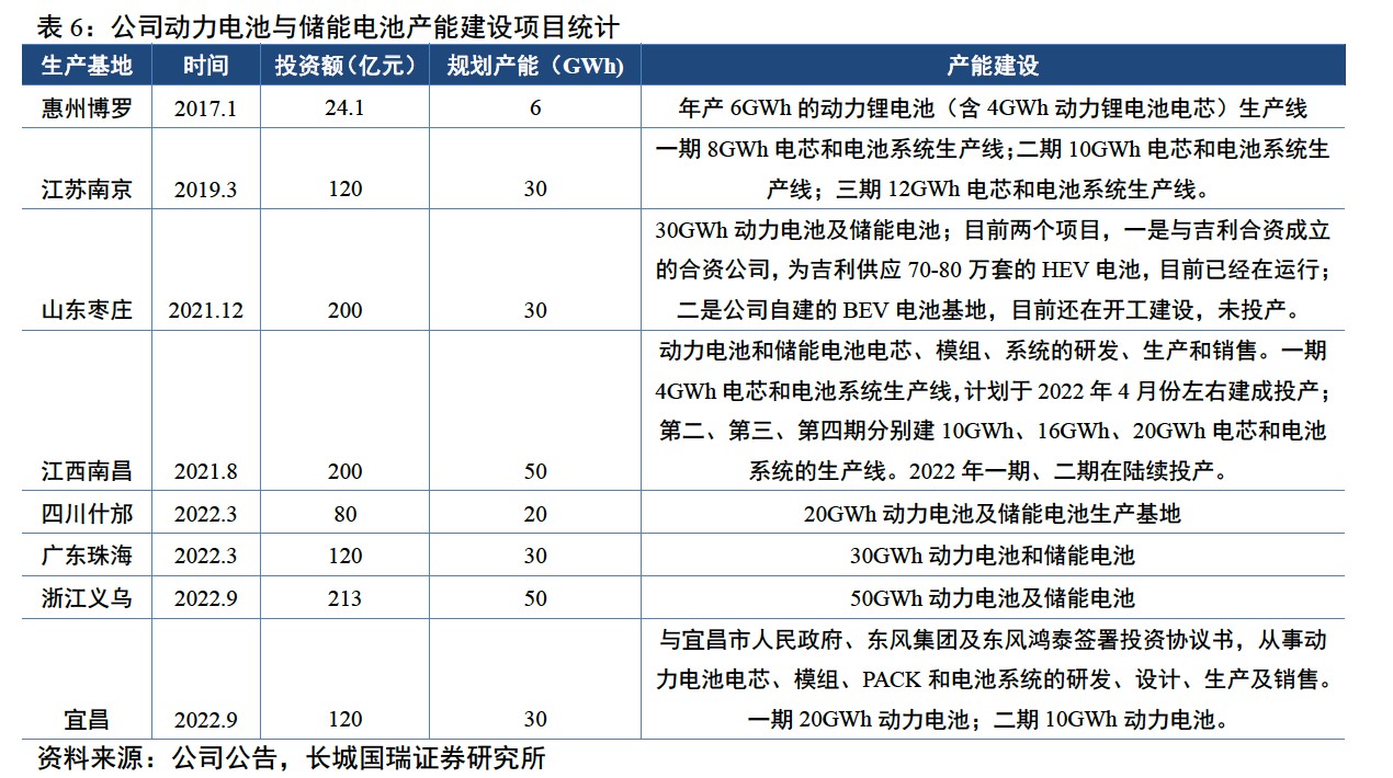 在此期間,公司產(chǎn)能加速擴張。截至2022年9月,公司動力電池與儲能規(guī)劃產(chǎn)能約246GWh,投資金額高達1077.1億元。