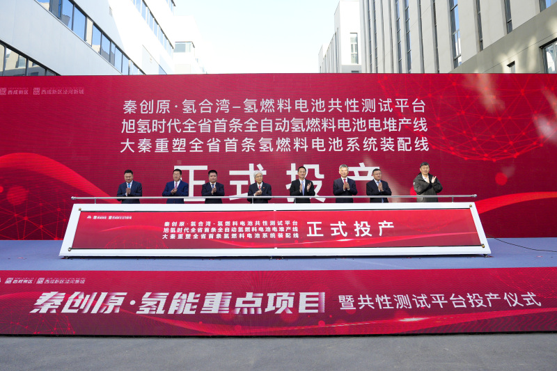 在現(xiàn)場(chǎng)熱烈的掌聲中,隨著與會(huì)嘉賓共同啟動(dòng)推桿,秦創(chuàng)原·氫能重點(diǎn)項(xiàng)目暨共性測(cè)試平臺(tái)正式投用,旭氫時(shí)代全省首條全自動(dòng)氫燃料電池電堆產(chǎn)線、大秦重塑全省首條氫燃料電池系統(tǒng)裝配線正式投產(chǎn)。