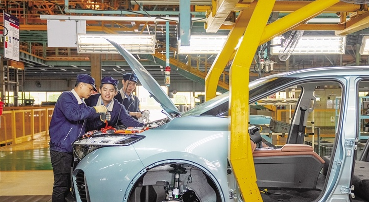 海馬汽車海口基地生產車間,工人裝配海馬氫燃料