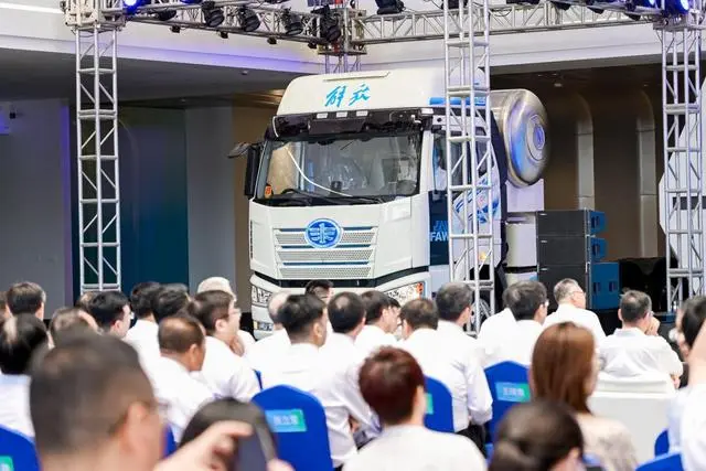 6月28日,一汽解放(青島)商用車開(kāi)發(fā)院揭牌儀式舉行,解放藍(lán)途“星熠”氫能雙子星系列產(chǎn)品也正式面世。