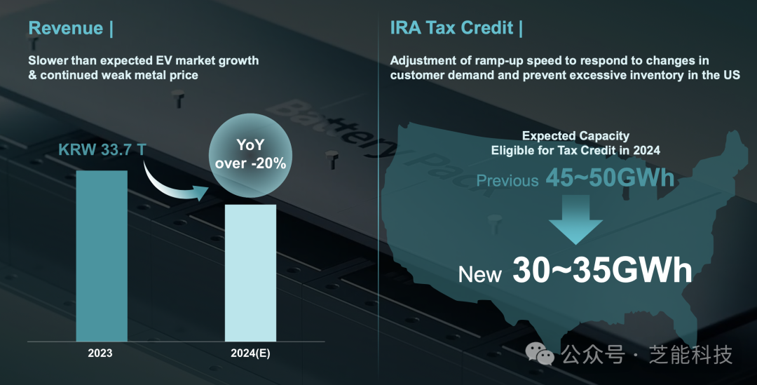 應對電動汽車市場增長放緩的趨勢,LG新能源下調了年度指標,預計2024年綜合收入將比去年下降20%。