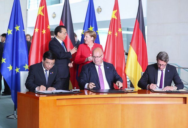 當地時間2018年7月9日中午,國務院總理李克強在柏林總理府與德國總理默克爾共同主持第五輪中德政府磋商。磋商后,在兩國領導人見證下,工業和信息化部部長苗圩與德國聯邦經濟和能源部、聯邦交通和數字基礎設施部代表共同簽署了《關于自動網聯駕駛領域合作的聯合意向聲明》。