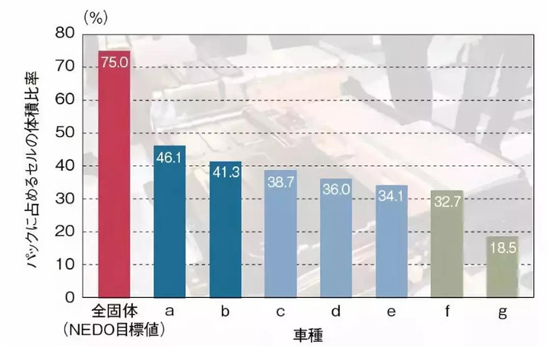 據(jù)日本NEDO研究數(shù)據(jù)表明,現(xiàn)有的鋰離子電池pack中電芯的體積比率大概為20%-50%,如果采用全固態(tài)電池,電池pack不需要冷卻系統(tǒng),體積能減小一半左右。