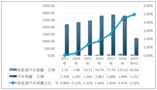 近年來,新能源汽車增長保持強勢,雖然受汽車整體行業走弱的影響,新能源汽車銷量有所下滑,但其比重穩步提升。未來新能源汽車將成為汽車行業的核心增長點。