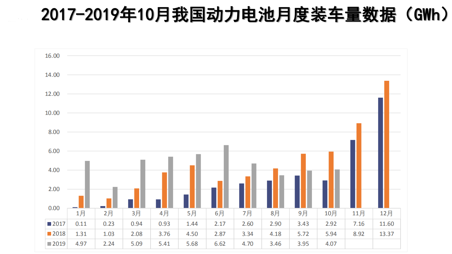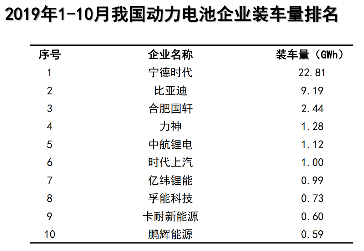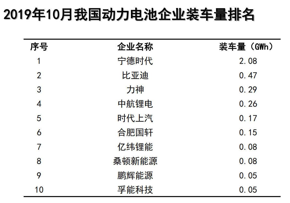 一. 2019年10月動力電池產量數據