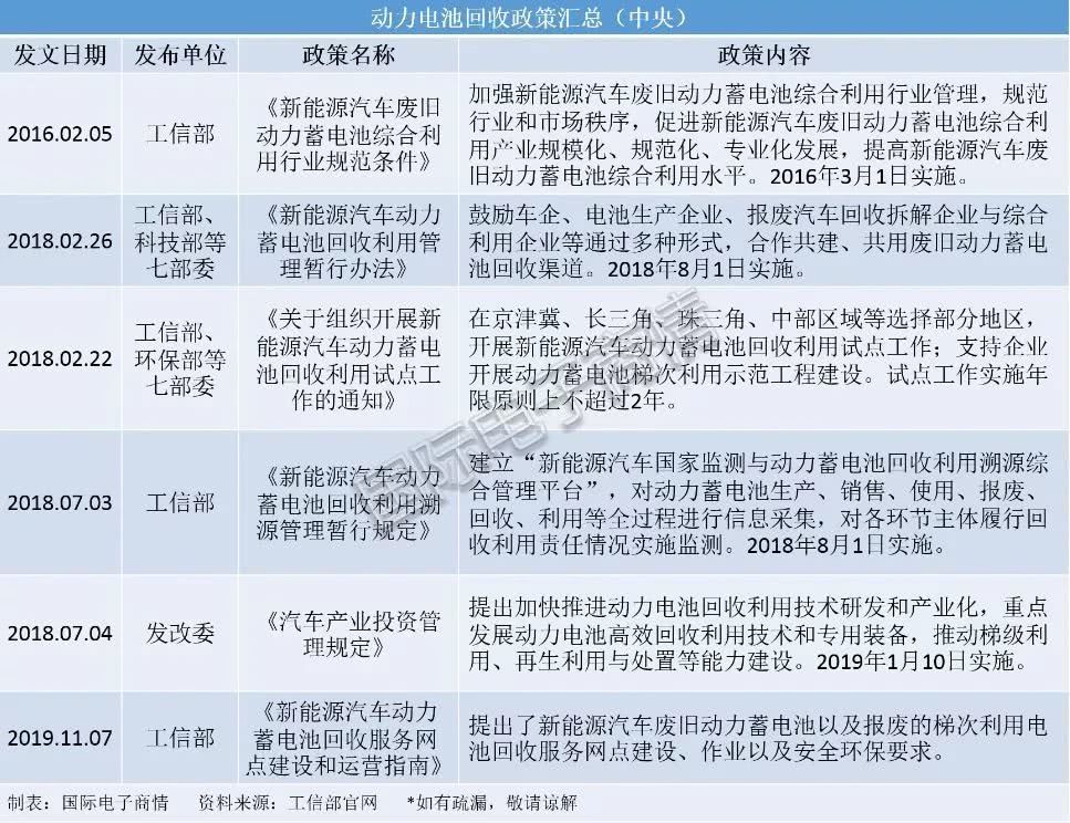 表1 我國動力電池回收政策匯總 制圖:國際電子商情