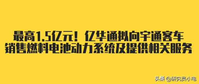 12月13日,億華通發布公告,稱公司及其下屬控股子公司擬向宇通客車銷售燃料電池動力系統及提供相關服務,預計交易金額增加到不超過 1.5 億元。