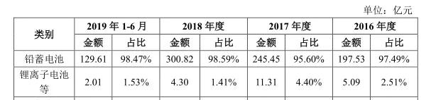 2019年公司固定資產、在建工程、無形資產賬面價值合計接近50億元,年折舊攤銷金額超過4億元,固定成本金額較大,營業收入為427.44億元,凈利潤為15.49億元,銷售凈利率為3.62%,鉛蓄電池產品系公司收入及凈利潤的主要來源: