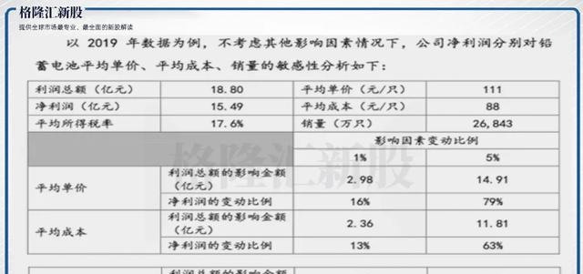 1、在不考慮其他因素影響情況下,鉛蓄電池單價或成本的變化動對公司盈利情況影響較大,單位成本每變動1%,凈利潤將隨之變動13%,單價每變動1%,公司凈利潤將隨之變動16%,且兩者對于凈利潤的影響是反向的;