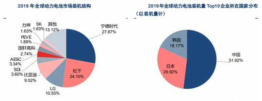 歐洲新能源汽車市場重回快速發展軌道,勢必對動力電池產業鏈有一股強勁的帶動作用。而根據SNE research統計數據顯示,2019年全球動力電池出貨量前十企業占據全球出貨量86.88%的份額,前十企業均為中日韓企業。同時上游材料供應商也幾乎都分布于中日韓地區。