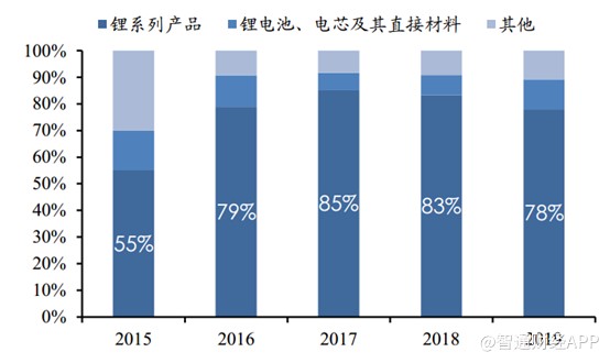 智通財(cái)經(jīng)APP觀察到,從收入結(jié)構(gòu)看,贛鋒鋰業(yè)仍然以鋰系列產(chǎn)品為主,包括鋰鹽和鋰。2019年,鋰系列產(chǎn)品收入占比達(dá)到78%,鋰電池、電芯及直接材料收入占比11%,毛利潤方面,鋰系列產(chǎn)品達(dá)到90%,仍是業(yè)務(wù)主導(dǎo)。不過從趨勢看,鋰系列占比逐漸降低,主要是因?yàn)橼M鋒鋰業(yè)開始布局上下游業(yè)務(wù)。