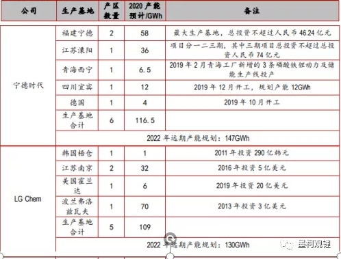 圖表2:CATL與LG化學國內外電池產能布局投建情況