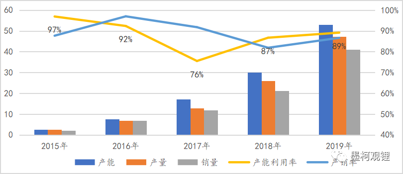 圖表6:CATL歷年產能、產量、銷量情況統計