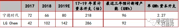 圖表7:CATL與LG化學單GWh資本對比(億元)