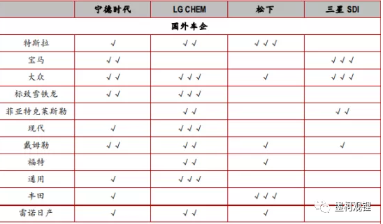 5、CATL綁定主機廠國內領先,LG化學卡位高端客戶群體