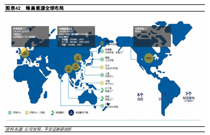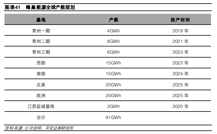 至 2025 年蜂巢國內產能總規劃為 51GWh,建成產能 4Gwh,全球產能規劃約 91GWh,其中歐洲規劃 20GWH,北美規劃 20GWH。