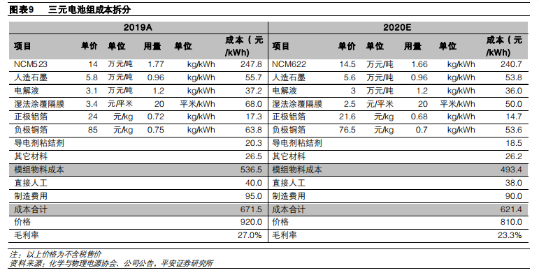 2019 年新能源車銷量累計同比-4%,但是由于單車帶電量提升,2019 年中國汽車用動力電池裝機量為 62GWh,同比增長 10%。