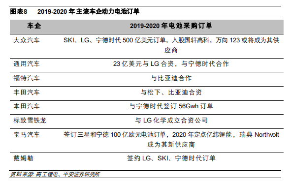 在磷酸鐵鋰和三元電池領域均深度綁定 OEM,且從 2017 年開始與 OEM 成立合資公司,從 2018年開始寧德時代開始斬獲海外車企訂單,獲得全球主機廠的認可。