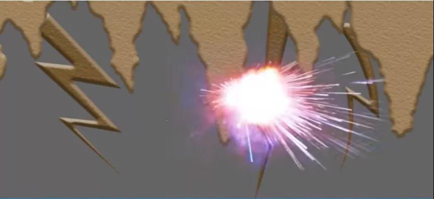 枝晶產(chǎn)生穿透隔膜產(chǎn)生為短路進(jìn)而爆出火花的示意圖