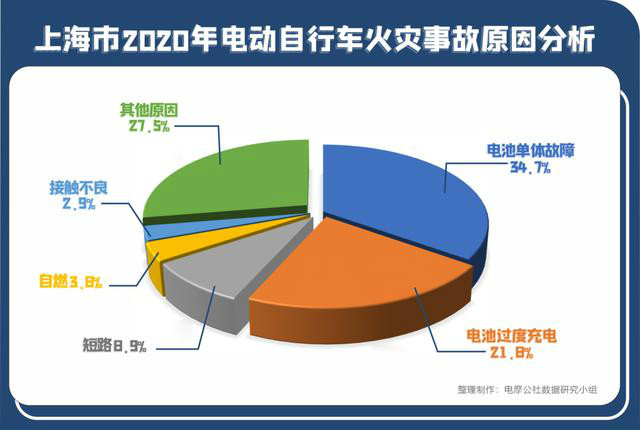 從相關(guān)部門給出的上海市381起電動(dòng)車火災(zāi)原因的分析來(lái)看,電動(dòng)自行車蓄電池質(zhì)量不過(guò)關(guān)是最重要的原因,僅電池單體故障引發(fā)的火災(zāi)事故就占據(jù)了34.7%。