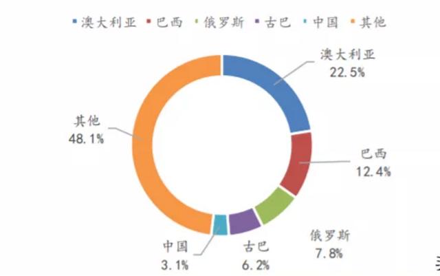全球鎳資源豐富,分布于世界各地,儲量整體呈現上漲態勢。根據美國地質調查局(USGS)數據,全球鎳資源儲量 8900萬噸,其中澳大利亞為鎳資源最豐富的國家,占比 22.5%;其次是巴西 12.4%、俄羅斯 7.8%、古巴 6.2%、中國 3.1%等,前五大國家的鎳儲量占比共達 51.9%,鎳資源儲量分布相對集中。